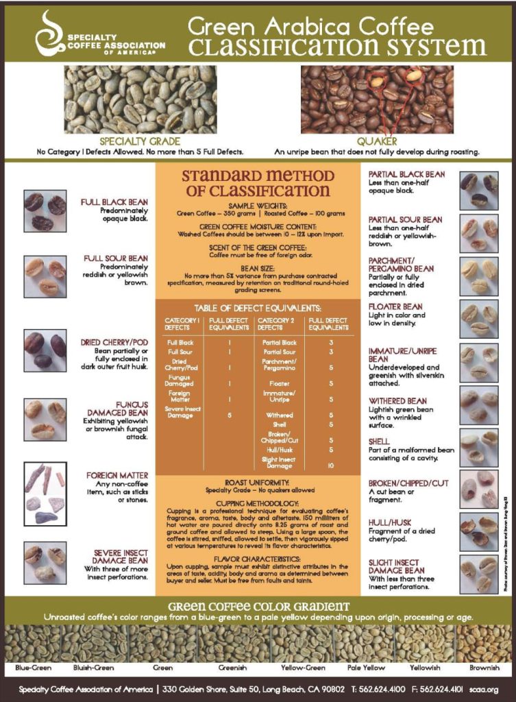 First, a discussion about defects and taints is in order. Defects are things that are recognized in the industry as anything that negatively impacts coffee quality. Things like over-ripened or under-ripened cherries, black beans, sour beans, sticks, stones, insect-infestation, disease, etc are all universally understood as defects. Defects are easily identifiable by simply looking at the green coffee sample. The Specialty Coffee Association has developed a classification system based on the allowable number of defects a sample may have in order to be considered Specialty Grade. It is generally accepted that defects will taint the coffee’s flavor. Taints are variables that impact the flavor quality. Things like mold, ferment, petroleum, past crop, etc., will negatively alter a coffee’s flavor. Taints are identified by sampling the coffee in a prescribed manner known as Cupping.