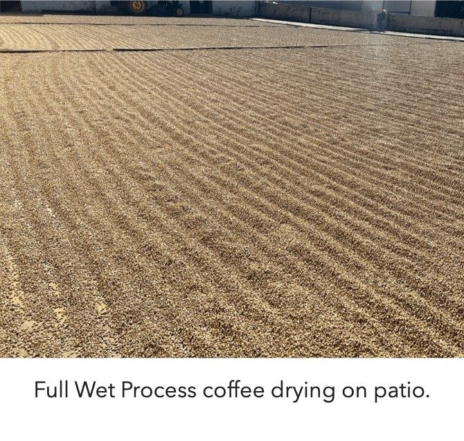 The processing of the coffee cherry involves getting rid of all these layers around the seed itself. It is here that we make our first step defining specialty coffee from conventional coffee. For much of conventional coffee history, quality was defined by the cleanliness of the preparation from cherry to bean. It was generally accepted that good coffee was clean coffee, free from off flavors that could result from processing. Professional coffee tasters were skilled at detecting tainted characteristics due to processing and rewarded growers for clean, well processed coffee beans. The method generally preferred was the “full wet” method of washing the fruit from the beans and evenly drying them on patio beds until they were of uniform moisture. If the process is done correctly the coffee beans will display a clean bright citrus acidity of fresh lemon. This is known as “good acidity” in the conventional coffee trade.