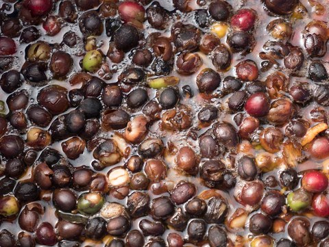 Finally, some growers have experimented with maceration of the cherries before pulping. The idea here is to control the amount of oxygen to the fermenting fruit. This can be done as simply as placing a tarp over a pile of fruit, to sealing the cherries in bags, or even sealing them in containers such like drums. This process is usually described as carbonic maceration or anaerobic maceration and typically results in a more pronounced winey – or, if overdone, boozy – character.